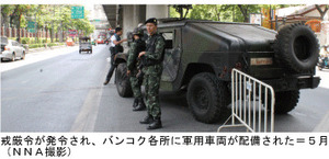 昨年後半から続いた政情の混乱は、インラック首相の失職、戒厳令を経て、5月22日に軍部によるクーデター決…