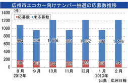 広州の車ナンバー抽選、エコカー応募100件以下(2013/02/28)