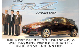 ホンダ、HV販売1.2万台目標:「CR―Z」を改良、首位固め狙う(2013/02/22)