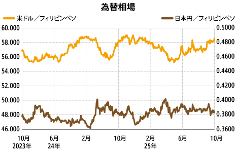 フィリピン【フィリピン為替情報】年初来のペソ安値圏まで上伸金融マクロ経済金融一般■これまでの動き(10月13~24日) 10月13日の週の米ドル・フィリピンペソ為替相場は、1米ドル=58.222ペソで取引を開始。 週明けは日米が祝日となるなど主要な……