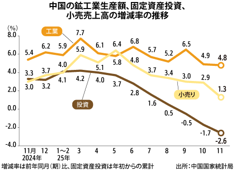 中国小売売上高が3年で伸び最小PICK UP経済マクロ経済統計自動車電機医薬品化学一般繊維鉄鋼・金属宝石・宝飾品その他製造精密機器機械石油・石炭・ガス鉱業電力・ガス・水道設備投資卸売りその他サービス観光雇用・労務政策・法律・規制車部品小売り外食・飲食NEW