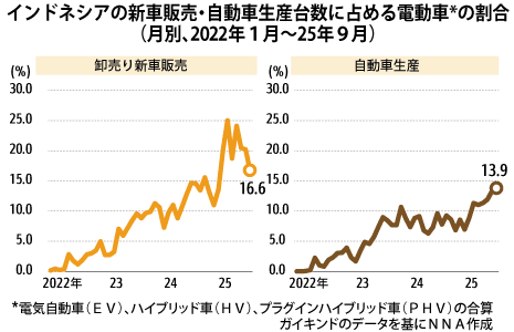 インドネシア9月の電動車販売シェア17%中国系中心のEV失速、HV堅調PICK UP車両統計自動車電機インドネシア自動車製造業者協会(ガイキンド)によると、9月の卸売りベースの電動車販売台数は前年同月比3.3%減の1万311台で、新車市場全体に対するシェアは…