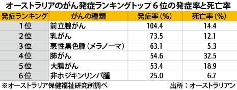 オーストラリア〔泡沫夢幻〕豪で前立腺がん過去最多、新規患者2万9千人医薬統計保健医療医薬品社会一般 政府機関のオーストラリア健康福祉研究所(AIHW)の最新推計によると、オーストラリアで前立腺がんの罹患数が過去最多を更新し、男性のがんの最多要因とな…