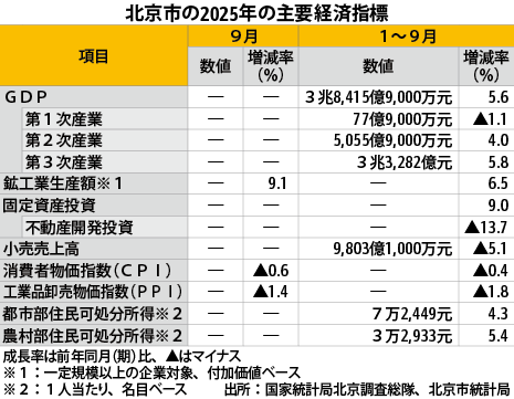 中国北京北京のGDP、1~9月は5.6%成長経済マクロ経済統計NEW北京市統計局と中国国家統計局北京調査総隊は22日、北京市の2025年1~9月の域内総生産(GDP、速報値)が前年同期比5.6%増の3兆8,415億9,000万元(約81兆8…