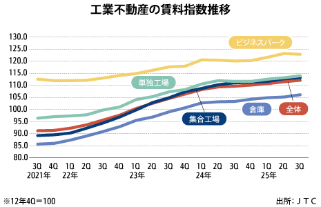 シンガポール工業不動産賃料、7~9月期は2.3%上昇建設統計不動産建設・プラント シンガポール政府系の工業団地運営機関JTCコーポレーションが発表した統計で、国内の工業不動産の賃料指数(2012年10~12月期=100)は25年7~9月期に11…