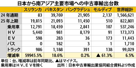 パキスタン日本の上期の中古車輸出、パキスタンは19%増車両自動車日本からパキスタンへの中古車輸出が伸びている。2025年上期(1~6月)の輸出台数は前年同期比18.6%増の2万1,093台だった。パキスタンは自国で自動車を生産し…