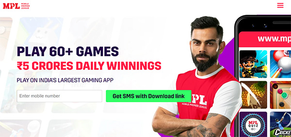 例えば、下の画像はインド最大級のeスポーツのプラットフォーム「Mobile Premier League(MPL)」のものです。欧州の投資家などからも出資を受け、時価総額が約1,000億円にも上る有力企業に成長しています。