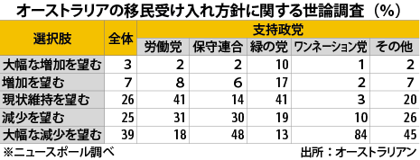 オーストラリア〔泡沫夢幻〕移民削減を望む声、国民の6割超=世論調査政治統計不動産社会一般政治一般政策・法律・規制 オーストラリアの調査会社ニュースポールの最新世論調査によると、国内の有権者の約3分の2が、現在より移民の受け入れを減らすべきだと考えていることが分か…
