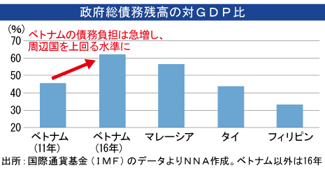 ベトナム【新指導部1年】成長加速に公的債務の壁「65%ライン」が足かせに経済マクロ経済政治一般政策・法律・規制2016年1月の共産党大会は、20年までの目標として年率6.5~7%の経済成長を設定した。前5年の年平均5.9%からさらに加速するには、輸出の7割を占める外資系企…
