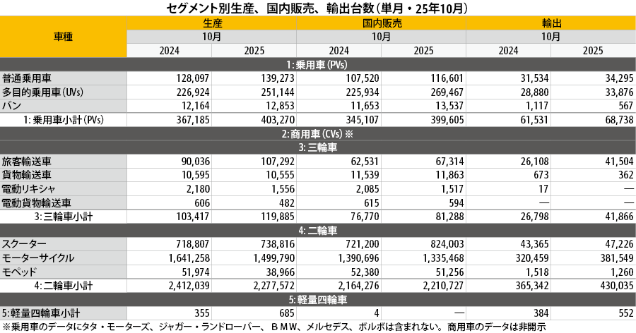 【自動車・二輪車統計月報(SIAM)】2025年10月
