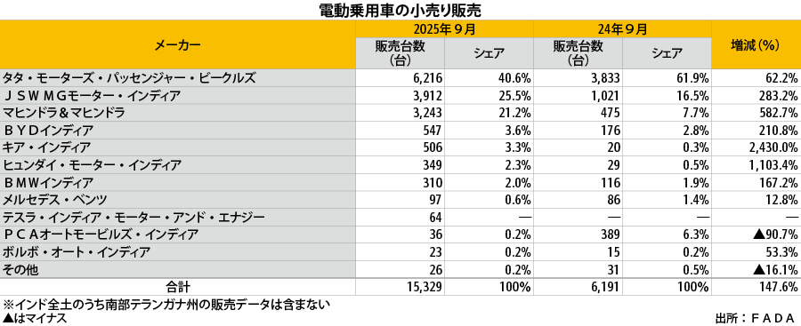 インドの自動車販売店協会連合(FADA)が毎月発表する電動車の小売り販売データをまとめて掲載します。