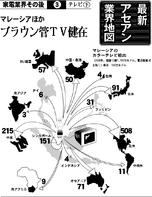 日本【アセアン業界地図】第168回 家電業界その後 テレビ(下)経済マクロ経済 日系家電メーカーの一大テレビ生産・輸出基地であるマレーシアでは、薄型時代への市場の急転換を受け、生産を完全に海外シフトするメーカーも出た。かつての…