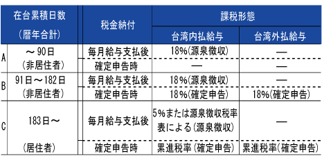 台湾【会計・実務】第167回 源泉徴収税率の変更商業マクロ経済その他サービスこのたびは、前回にお話しました毎月の給与の源泉徴収税率等の変更(6%→5%)について説明します。 まず2010年12月31日までは、在台日数183日以上のいわゆる居住…