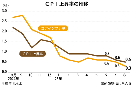 シンガポール8月の物価上昇率0.5%、前月から低下PICK UP経済マクロ経済統計小売り シンガポール統計局が23日に発表した2025年8月の消費者物価指数(CPI、24年=100)は101.0となり、前年同月から0.5%上昇した。伸び率は前月から0.1ポイン…